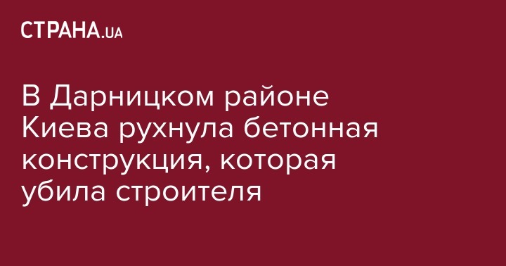 "В Дарницкое управление полиции столицы поступило сообщение, что во время строительных работ на рабочего, копавшего траншею, упала бетонная конструкция. Мужчина 1968 года рождения скончался на месте", - сказано в нем.
