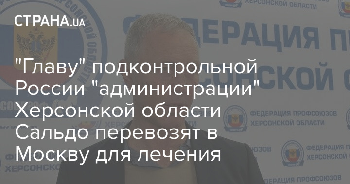 "Главу" подконтрольной РФ "администрации" Херсонской области Владимира Сальдо перевозят в Москву для лечения.