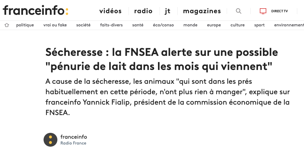 По мнению Franceinfo, такая ситуация чревата ростом цен на молоко. Но не только по этой причине, уточняет канал. Производители требуют пересмотра цен на их продукцию, чтобы "обеспечить устойчивость сектора".