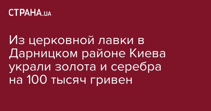Утром 12 ноября злоумышленник обокрал одну из церковных лавок в Дарницком районе столицы. Похищены золотые и серебряные изделия на 100 тысяч гривен. Об этом сообщает пресс-служба Нацполиции Киева.