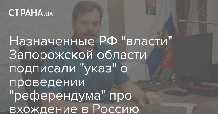 Назначенные РФ "власти" Запорожской области подписали "указ" о проведении "референдума" про вхождение в Россию