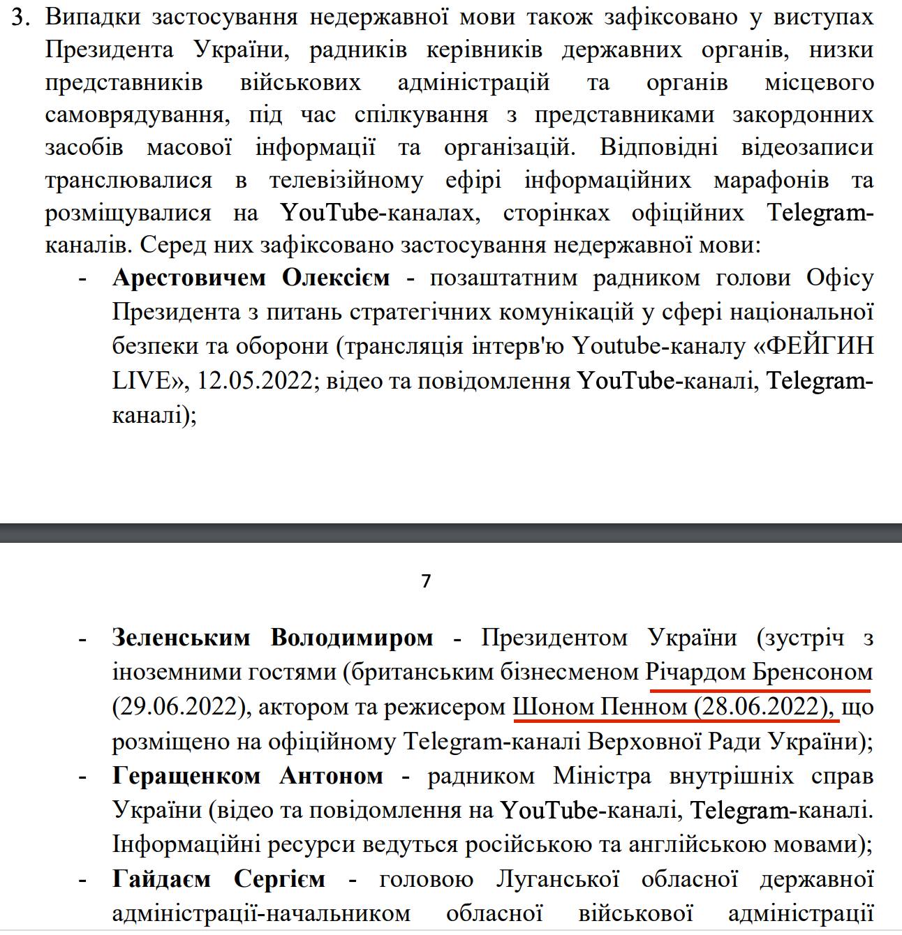 Среди нарушителей Зеленский, Ким, Арестович, Гайдай