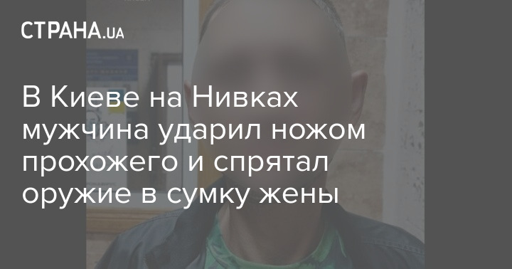 В Киеве на Нивках патрульные задержали мужчину, который бросался с ножом на прохожих, ранил человека, а потом попытался спрятать орудие преступления в сумку жены.