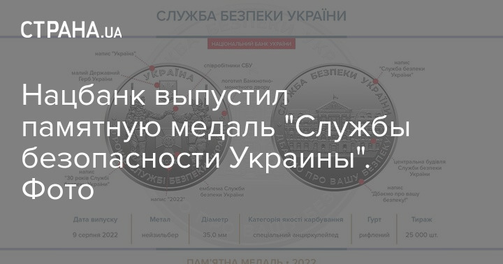 Нацбанк выпустил памятную медаль "Служба безопасности Украины".