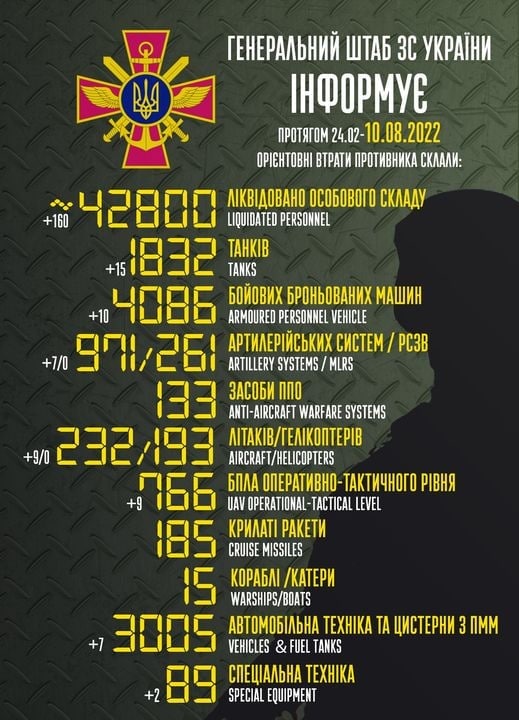 Между тем, война в Украине продолжается уже 168-й день. "Страна" следит за главными новостями 10 августа в обновляемом материале.