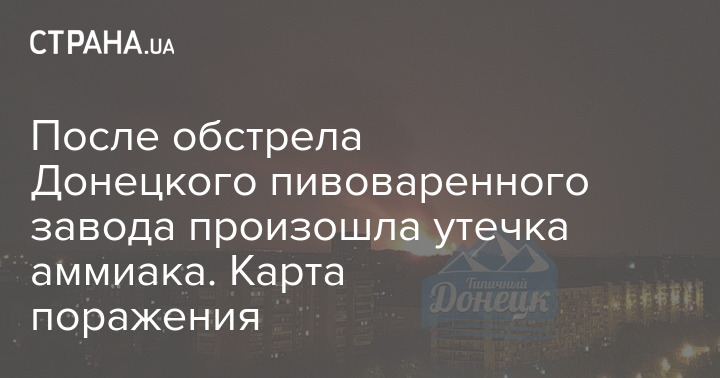 "Штаб теробороны ДНР" сообщает, что в результате обстрела территории Донецкого пивоваренного завода, расположенного в Калининском районе города, произошла утечка аммиака.