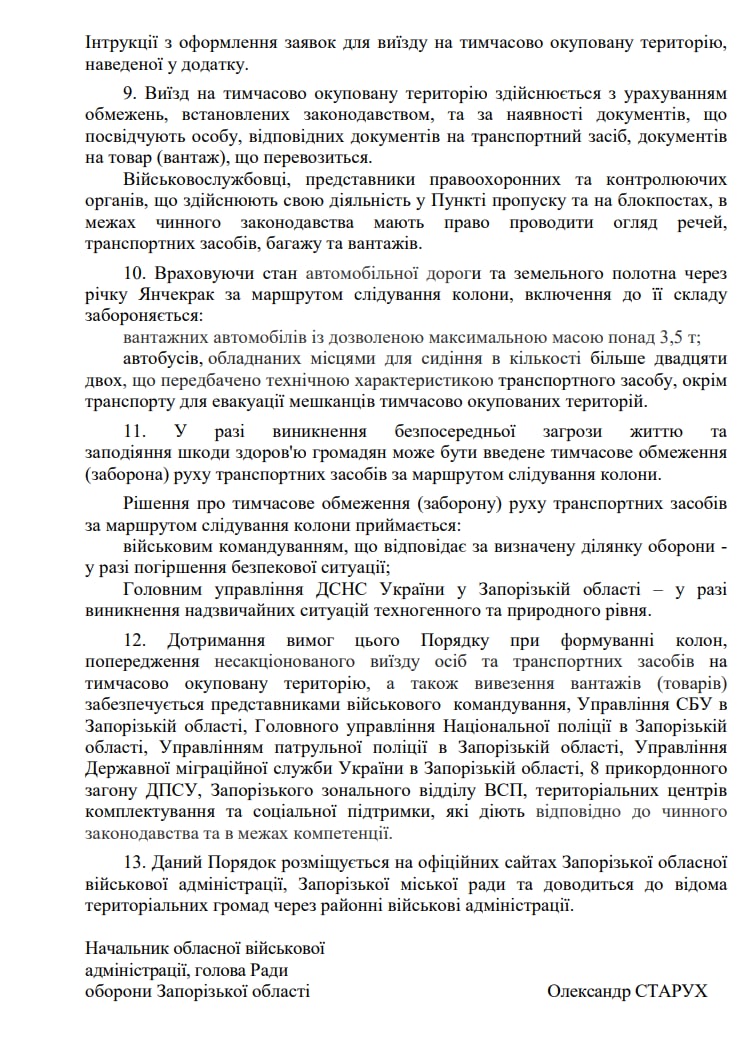 - Выезд осуществляется в составе колонн и только через определенный блокпост в селе Каменское Запорожской области.
