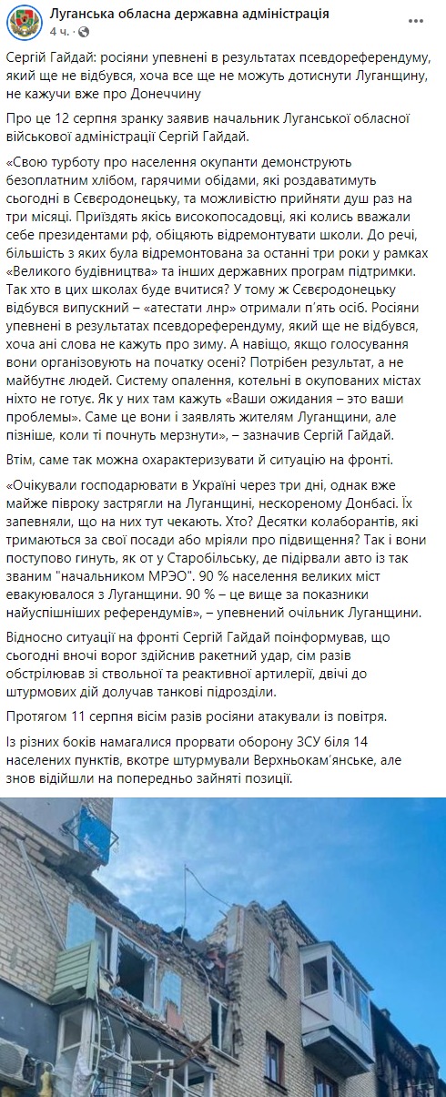 Тем временем война в Украине продолжается уже 170-й день. "Страна" следит за происходящим 12 августа в обновляемом материале.