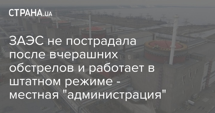 "Администрация" оккупированных районов Запорожской области заявляет, что после вчерашних обстрелов Запорожская АЭС не пострадала и работает в штатном режиме.
