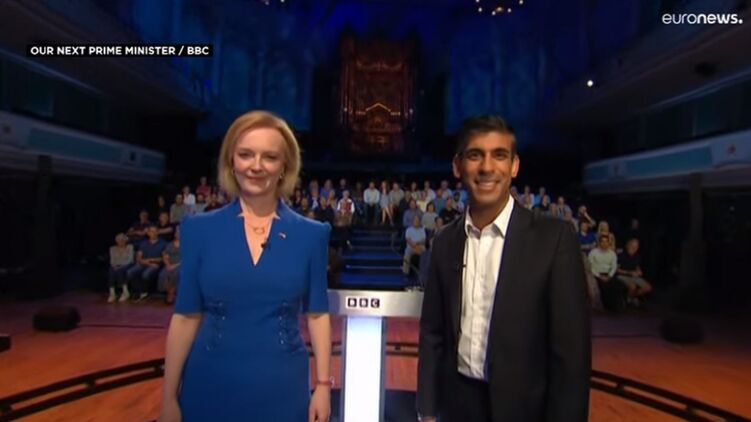 Лиз Трасс и Риши Сунак. Скриншот видео