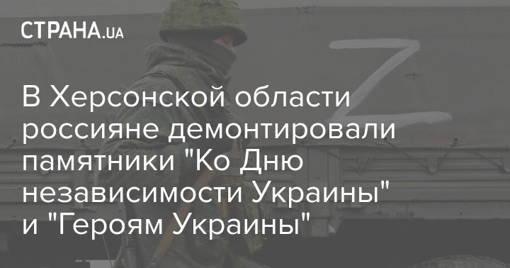 В Херсонской области россияне демонтировали памятники "Ко Дню независимости Украины" и "Героям Украины"
