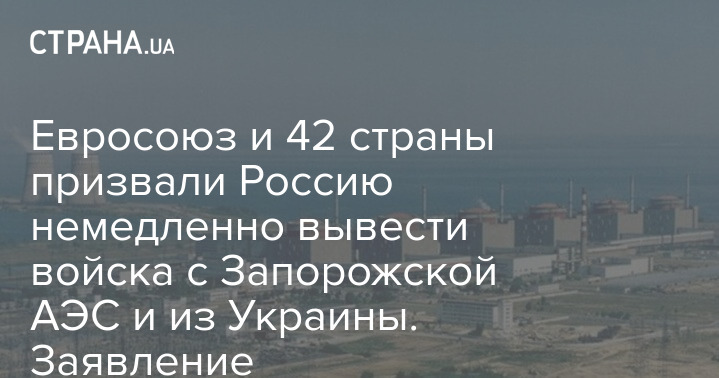 Европейский Союз и 42 страны отдельно опубликовали заявление, в котором призывают Россию немедленно вывести войска с территории Запорожской АЭС и из Украины.