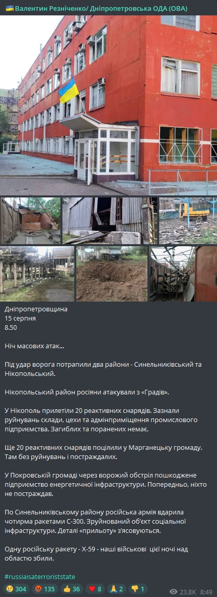 15 августа в Днепропетровской области была "ночь массированных атак".