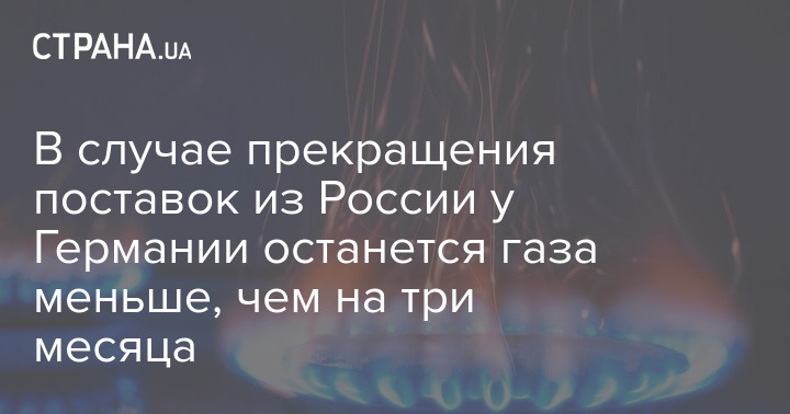 Если РФ прекратит поставки, Германии хватит запасов газа менее, чем на три месяца.
