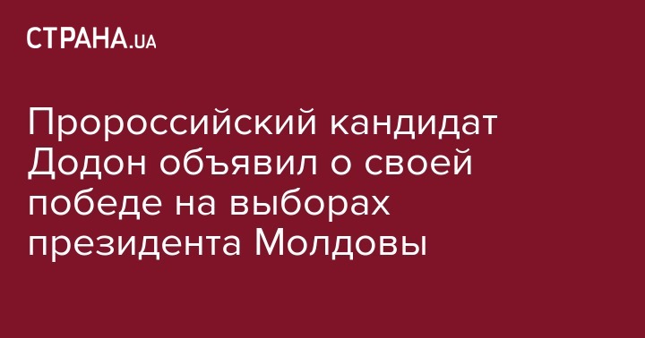 Глава Партии социалистов, пророссийский кандидат Игорь Додон объявил о своей победе на выборах президента Молдовы. Об этом сообщает "Интерфакс Украина".