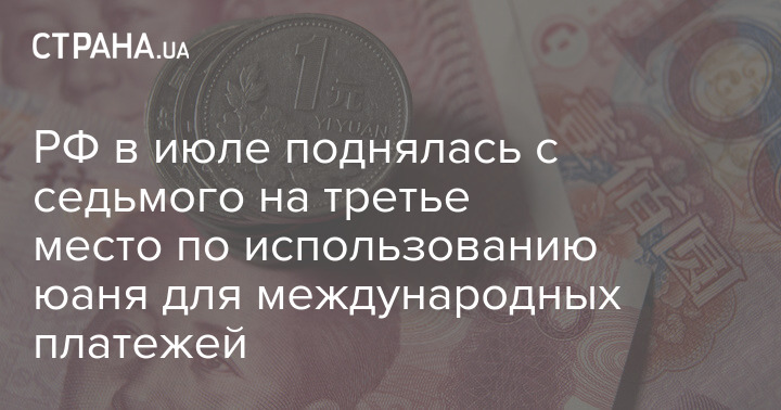 В июле Россия заняла третье место в мире по использованию юаня в международной торговле за пределами Китая. Ранее РФ занимала седьмое место.
