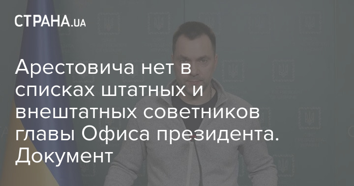 Арестовича нет в списках штатных и внештатных советников главы Офиса президента. Документ