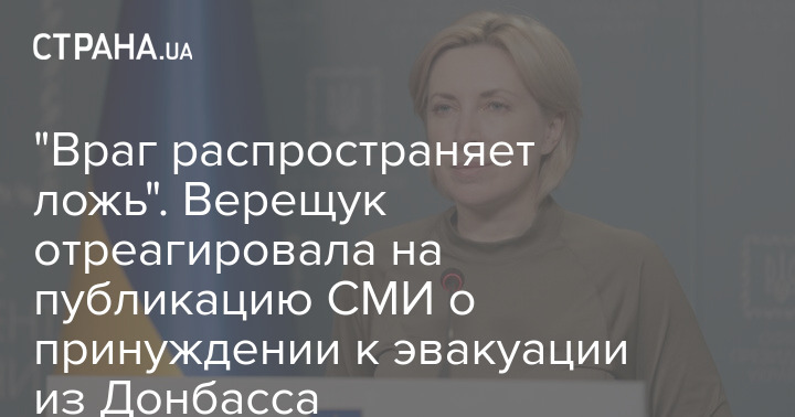 "Враг распространяет ложь". Верещук отреагировала на публикацию СМИ о принуждении к эвакуации из Донбасса