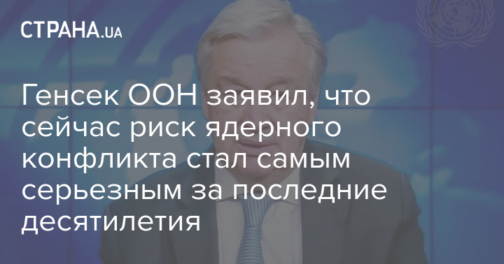 Генсек ООН заявил, что сейчас риск ядерного конфликта стал самым серьезным за последние десятилетия