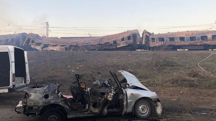 "Четыре пассажирских вагона горят. На данный момент убиты по меньшей мере 15 человек, около 50 ранены. Спасатели работают. Но, к сожалению, количество погибших еще может увеличиться", - сказал Зеленский.