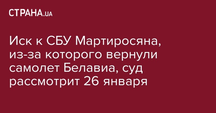 Как сообщала "Страна", Мартиросян, из-за которого развернули самолет "Белавиа", подал в суд на СБУ.  Адвокат Мартиросяна Юрий Иващенко продемонстрировал иск в Окружной административный суд Киева. "Суть иска - незаконный возврат воздушного судна, незаконное снятие пассажира с борта самолета, противоправный досмотр по процедуре таможенного досмотра. Фактически произошло задержание иностранного гражданина", - пояснил адвокат.