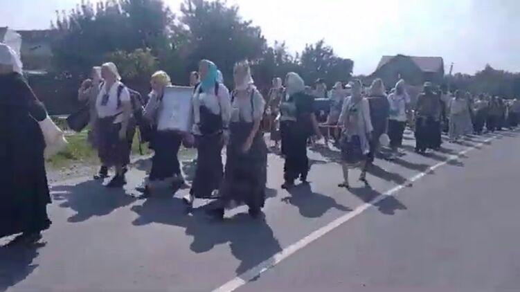 Пять тысяч прихожан УПЦ несмотря на запрет властей идут колонной из Хмельницкой области в Почаев