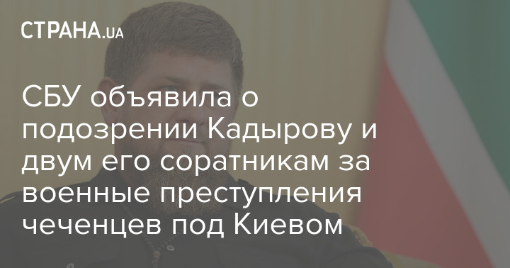 СБУ объявила о подозрении главе Чечни Рамзану Кадырову и двум его соратникам. Сообщается, что он лично в феврале-марте 2022 года руководил разработкой и планированием отдельных военных операций чеченцев на территории Украины.