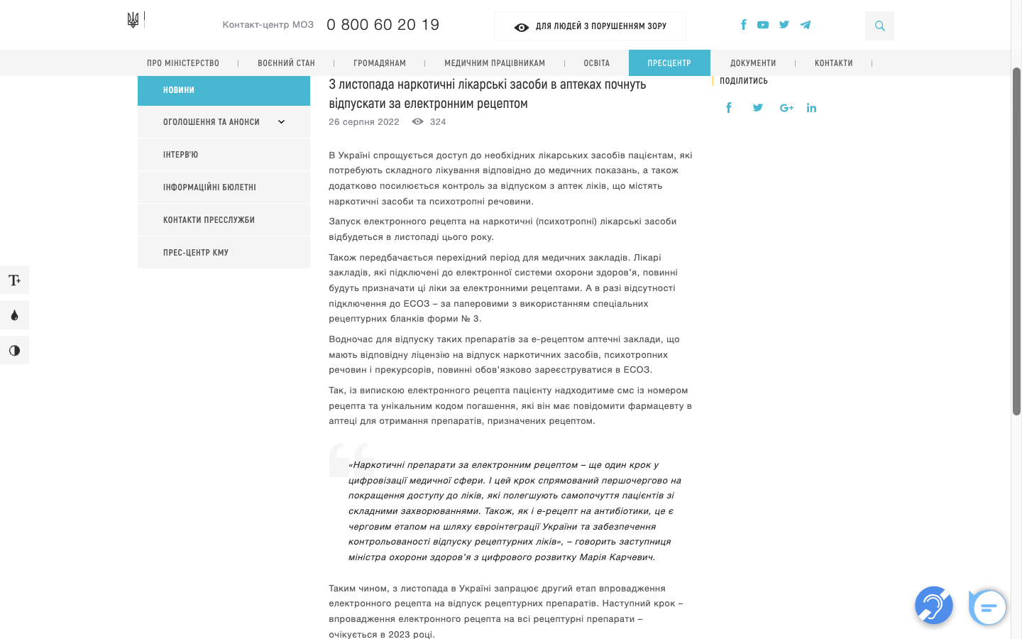 В украинских аптеках с ноября начнут отпускать наркотические лекарства по электронному рецепту. После получения электронного рецепта пациенту придет смс с уникальным кодом, который он должен будет сообщить фармацевту в аптеке.