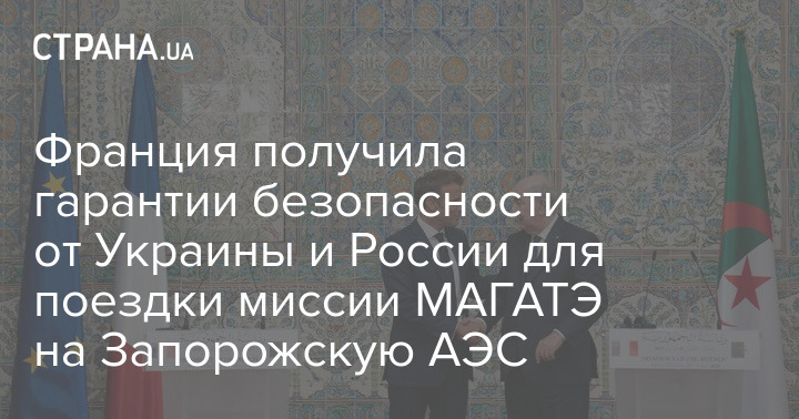 Франция получила гарантии безопасности от Украины и России для поездки миссии Международного агентства по атомной энергии (МАГАТЭ) на Запорожскую АЭС.