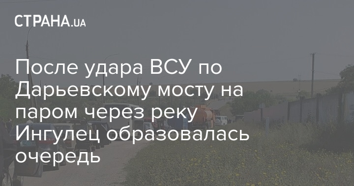 В сети появилось фото из Дарьевки в Херсонской области. На снимке видно очередь на паром через реку Ингулец после того как Дарьевский мост был выведен из строя ударами Вооруженных сил Украины.