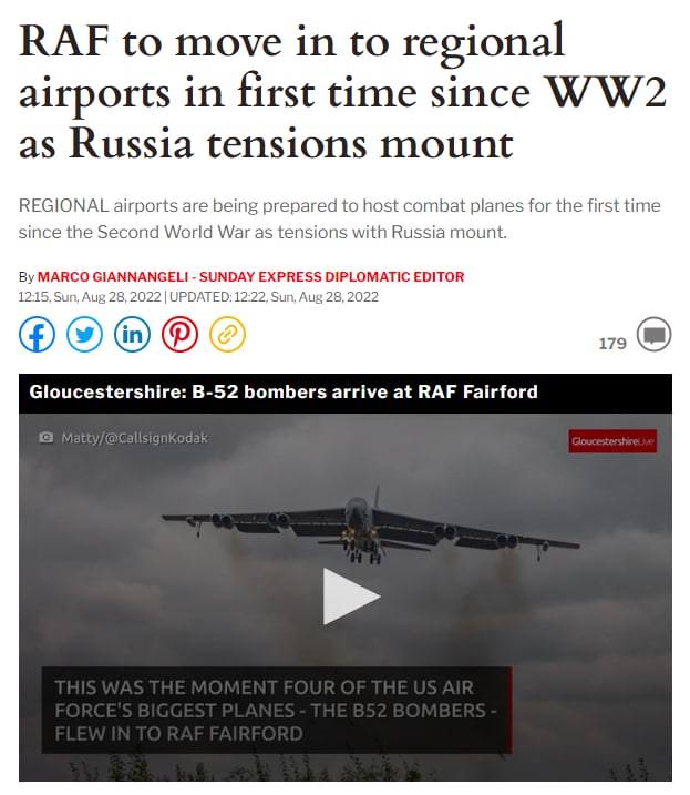 11:23 Истребители королевских военно-воздушных сил Великобритании перебазируются в гражданские аэропорты в связи с усилением напряженности в отношениях с РФ. На такой шаг страна идет впервые со времен Второй мировой войны, пишет Daily Express.