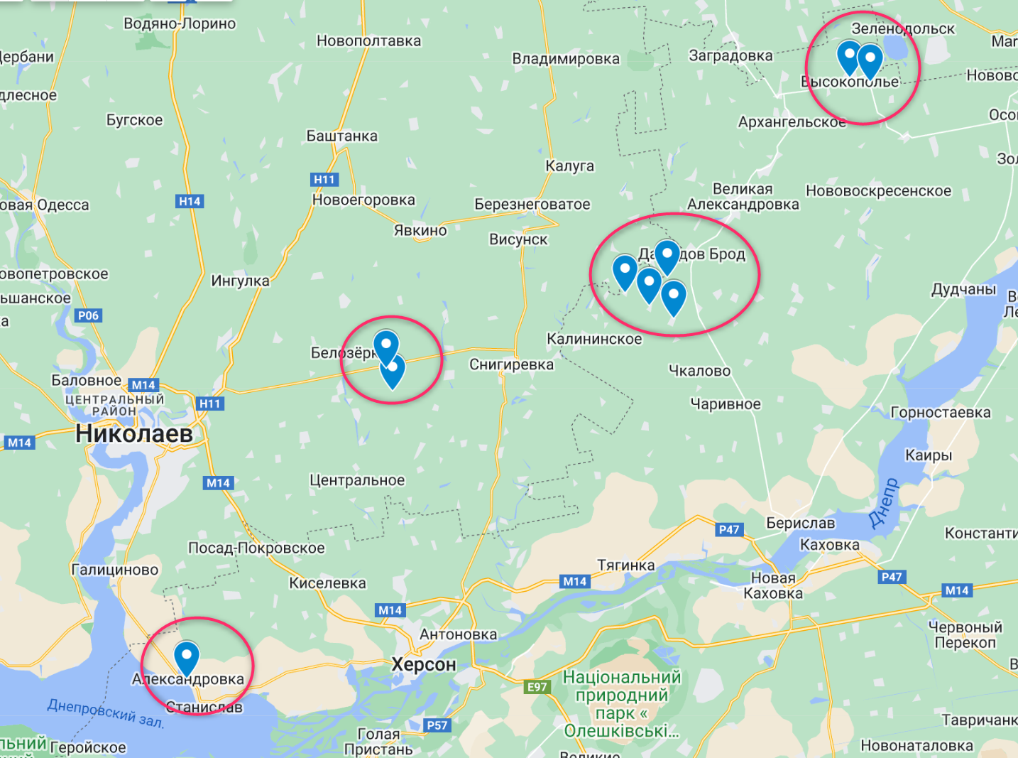 Также поступает информация об активизации боев еще на трех направлениях: у Благодатного-Партизанского (к северу от Херсона), у Посад-Покровского, у Снегиревки и в районе Высокополья (восточнее Давыдова Брода, криворожское направление).