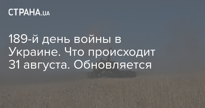 В среду, 31 августа, в Украине идет уже 189-й день войны с Россией.