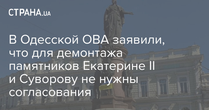 Одесская областная военная администрация официально уведомила одесский горсовет, что одесские памятники Екатерине II и Александру Суворову не имеют статуса объекта культурного наследия, и для их демонтажа или переноса никакие разрешения и согласования не нужны.
