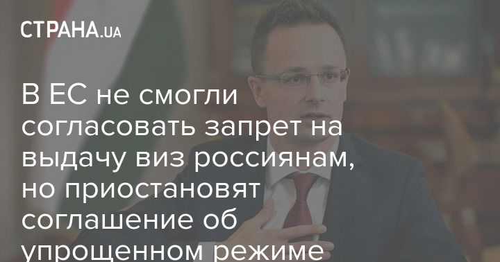 Сийярто также добавил, что ЕС приостановит соглашение с РФ об упрощенном визовом режиме.