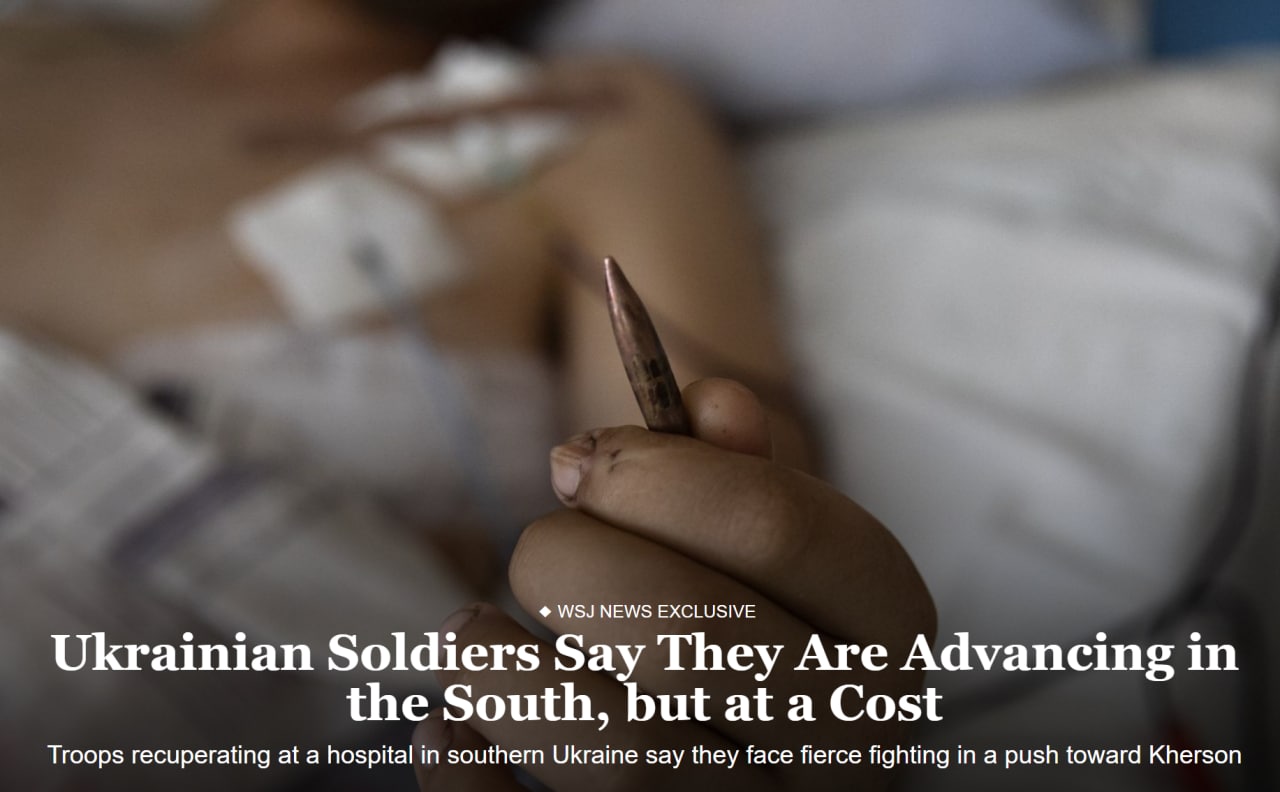 08:06 Издание The Wall Street Journal побеседовало с украинскими военными, которые лежат в госпиталях после участия в контрнаступлении на юге.