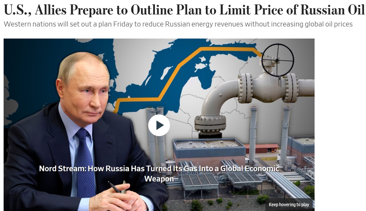 08:30 Ожидается, что завтра, 2 сентября, западные финансовые чиновники представят план по установлению потолка цен на российскую нефть, пишет The Wall Street Journal.