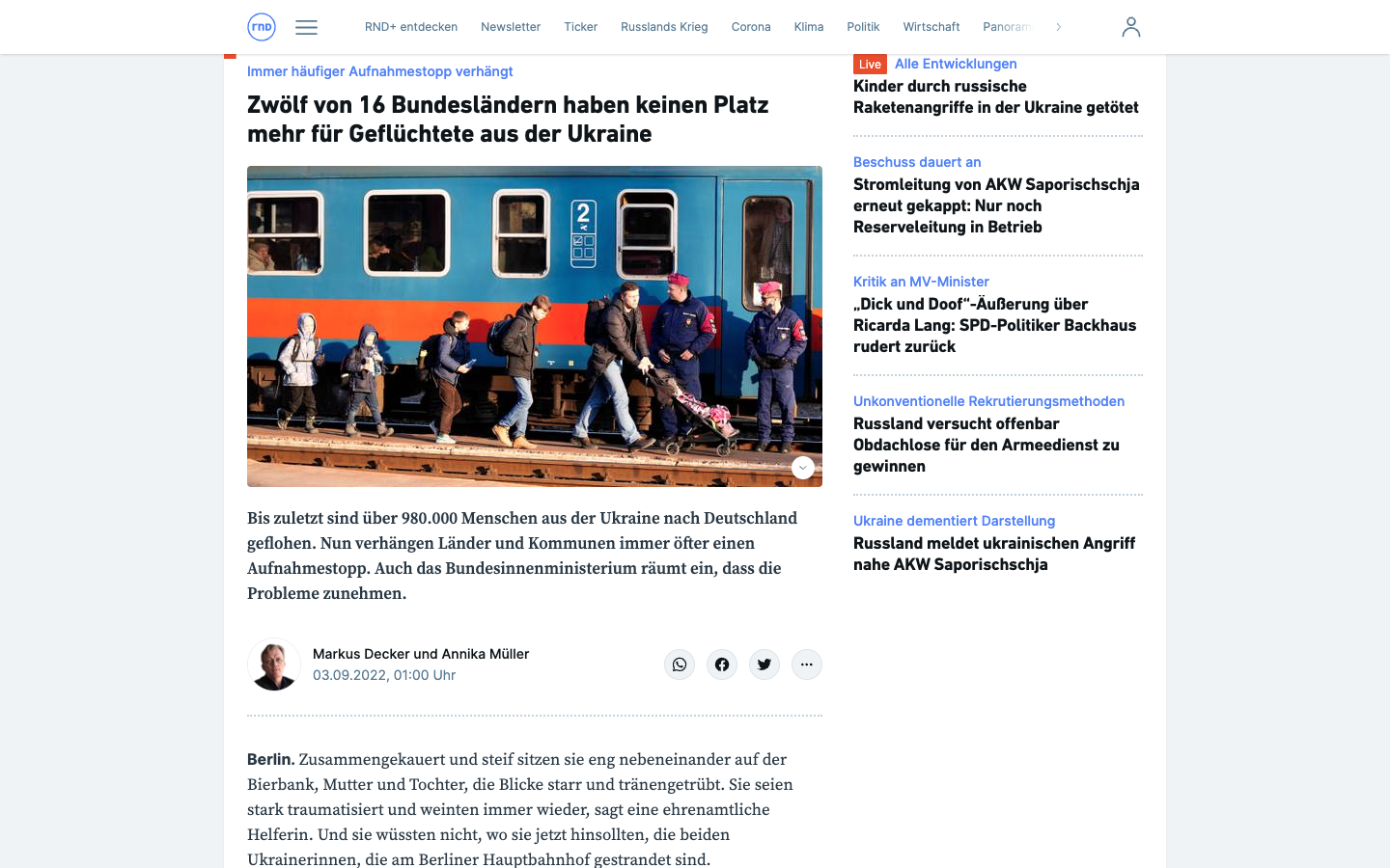 Германия существенно сократила прием новых беженцев из-за наплыва украинцев и общей миграции. Из 16 федеральных земель ФРГ 12 закрываются для первоначального размещения беженцев.