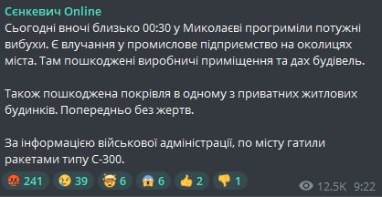 В Николаеве 5 сентября в 00:30 ночи мощному обстрелу подверглось промышленное предприятие на окраинах города. Из-за ударов повреждены производственные помещения и крыша.