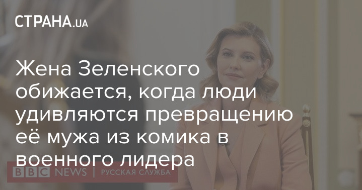 Елена Зеленская в интервью ВВС сказала, что ее оскорбляет, когда люди удивляются, как из актера-юмориста ее муж Владимир Зеленский превратился в военного лидера.