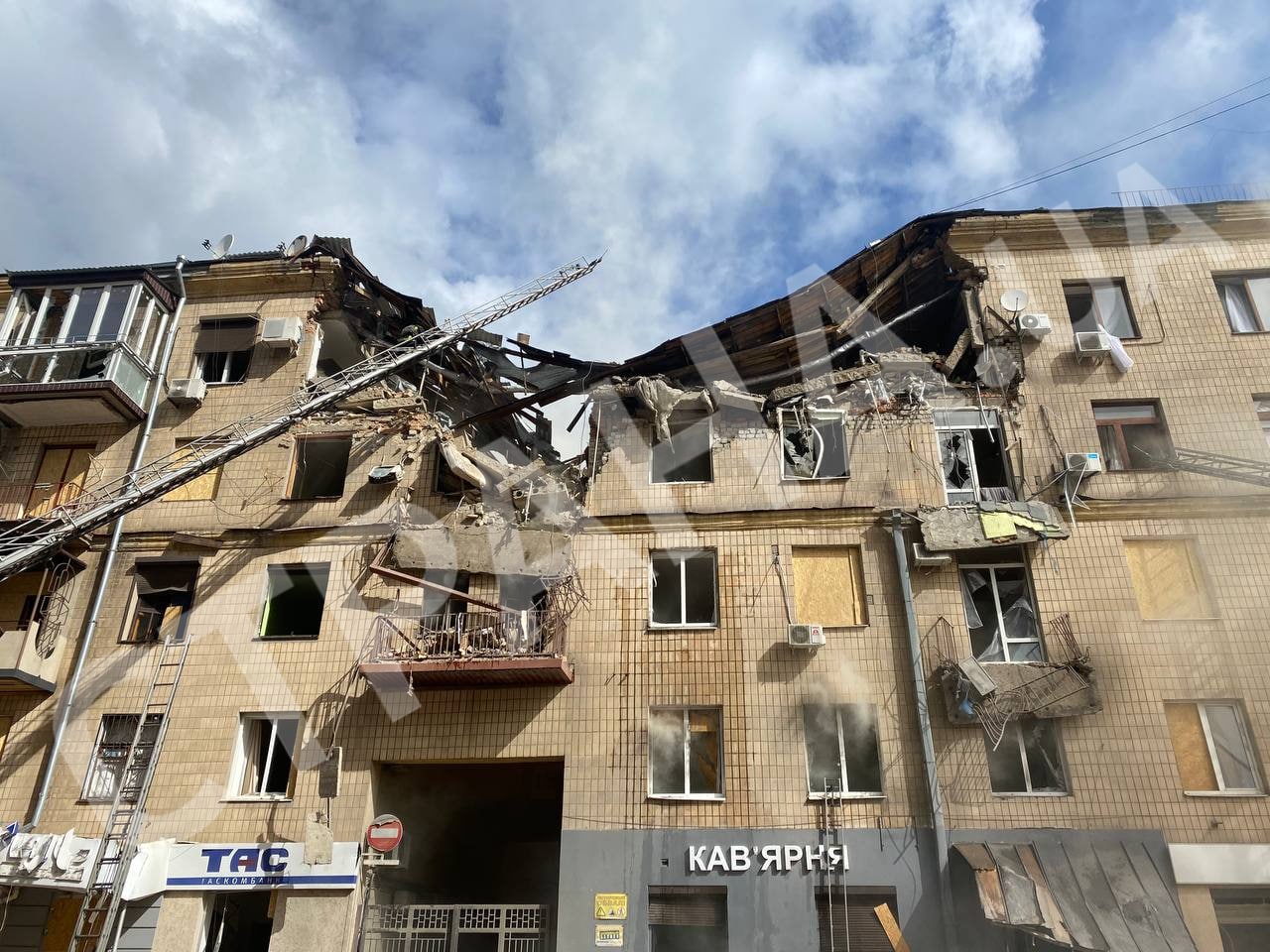 10.35 Фото прилета в центре Харькова Ракета попала в пятиэтажный жилой дом в центре города.