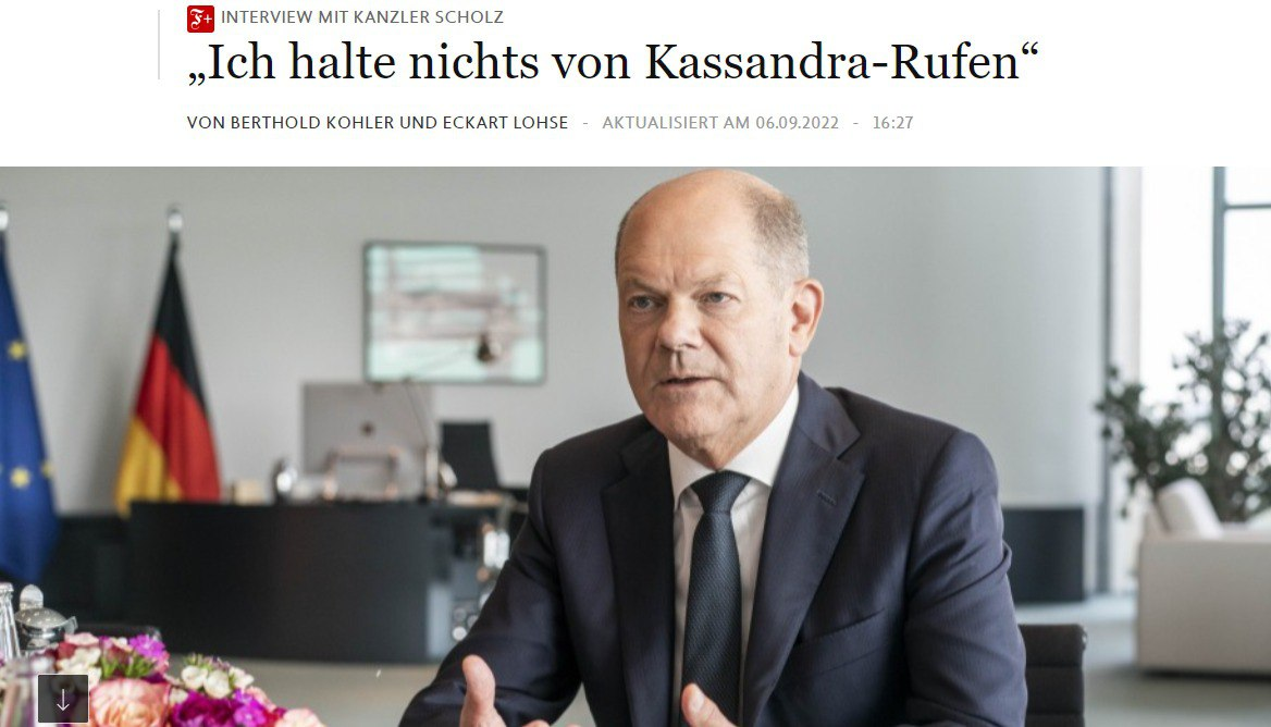 Об этом заявил канцлер Германии Олаф Шольц в интервью Frankfurter Allgemeine Zeitung.
