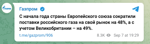 Страны Евросоюза с начала 2022 года сократили поставки газа из России на 48%.
