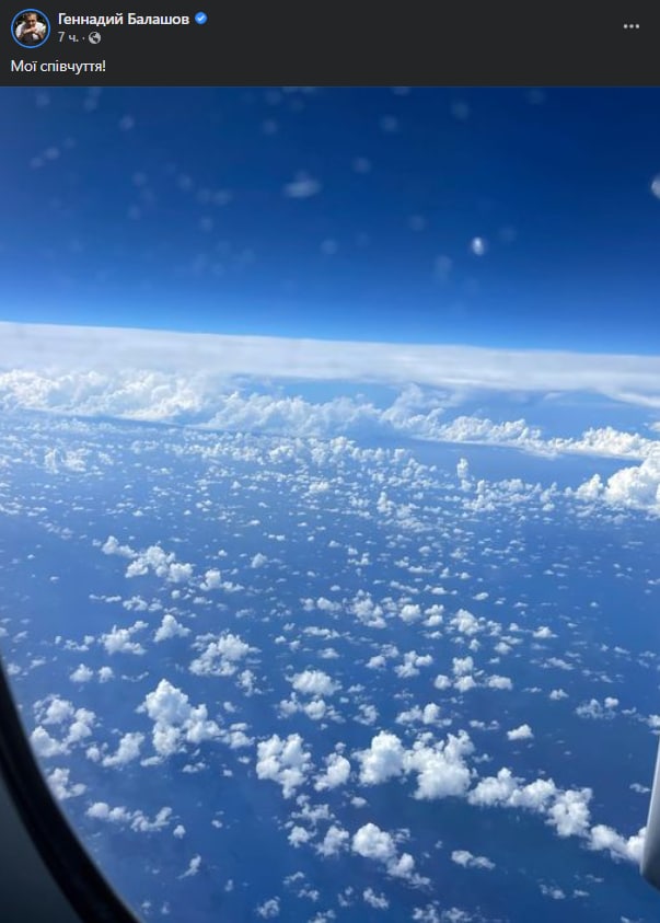 Он опубликовал фото с видом из иллюминатора самолета.