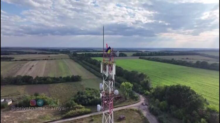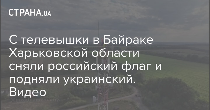 С телевышки в Байраке Харьковской области сняли российский флаг и подняли украинский. Видео