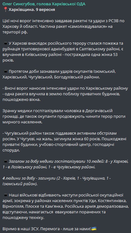 Об это сообщил глава Харьковской ОГА Олег Синегубов в своем Телеграм-канале.