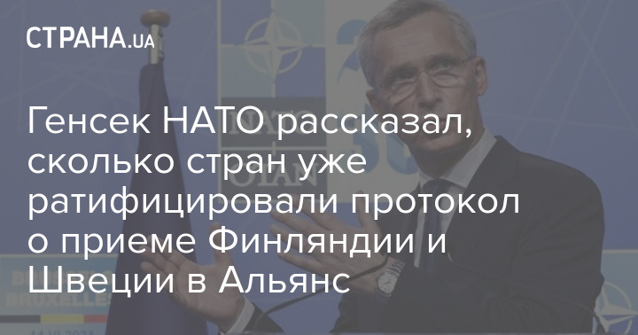 Протокол о приёме Финляндии и Швеции в НАТО ратифицировали 24 из 30 стран-участниц альянса, заявил генсек НАТО Йенс Столтенберг на пресс-конференции 9 сентября.