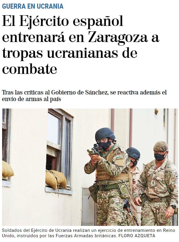 Сообщается, что учебный центр для бойцов ВСУ будет действовать в Сарагосе, куда уже прибыло для лечения и восстановления около 600 украинских солдат.