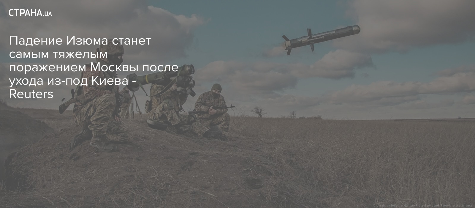 Издание Reuters сообщает, что быстрое падение Изюма в Харьковской области было самым тяжелым поражением Москвы с тех пор, как в марте ее войска были отброшены из столицы Киева
