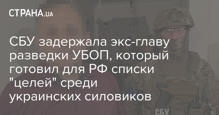 В Украине задержали бывшего руководителя криминальной разведки Управления по борьбе с оргпреступностью (расформированный в 2015-м УБОП) МВД Украины, который готовил для России списки "потенциальных целей" среди украинских чиновников из спецслужб и правоохранителей.
